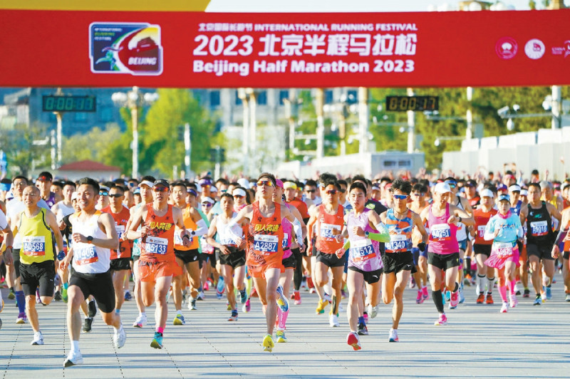 今天7时,2023北京国际长跑节—北京半程马拉松在天安门广场鸣枪开跑。经典的赛道线路,优良的天气条件,助力选手们创造了优异的成绩。肯尼亚选手基鲁伊以59分37秒的成绩获得男子组冠军,同时创造了赛会纪录。