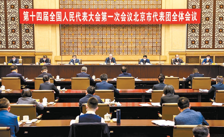 昨天下午,十四届全国人大一次会议北京市代表团召开全体会议,审议政府工作报告。本报记者 戴冰 摄