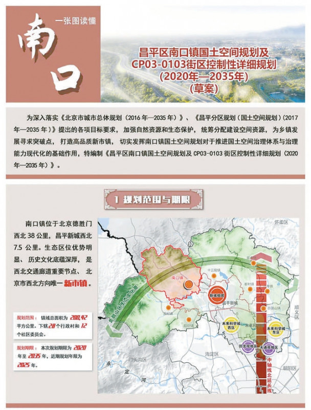 近日,昌平区南口镇国土空间规划公示,定位复兴南口,建设山清水澈、产业更新、独具魅力、宜居便捷、治理有效的模范宜居新市镇。其中,以南口“三大厂”为核心的产城融合区将引入清华科研基地,推动国企更新改造与转型发展,打造配套齐全的产业园区,推动各类工业、产业园区产城融合,提升城市基础设施及公共服务水平。