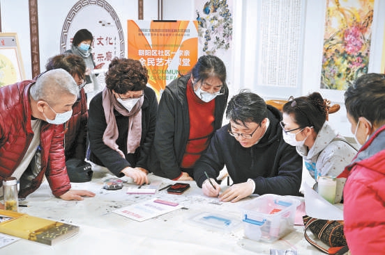 昨天,一堂图章雕刻课程在三间房党群服务中心开讲。去年9月起,“社区一家亲”全民艺术课堂启动,专业老师将艺术教育带到社区百姓身边。 本报记者 程功摄