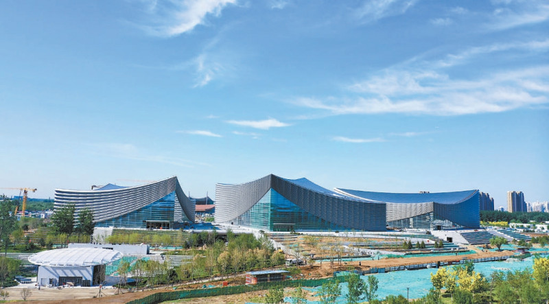 城市副中心三大建筑项目主体结构已全面完工并实现外立面亮相,现正进行内部精装修及室外市政、景观绿化工程,确保年底前全面完工并具备投用条件。本报特约摄影 马文晓