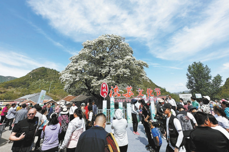 昨天,密云区新城子镇苏家峪村,在有着580年树龄的古流苏树下,以“赏百年流苏,游古堡新城”为主题的首届流苏文化节热闹启幕。本报记者 和冠欣摄