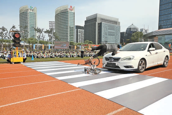 闯红灯、走路看手机、追逐打闹有多危险?“开门杀”“鬼探头”等交通事故该如何预防?前天,西城警方在月坛体育中心开展了校园交通安全主题系列宣传活动。特警队员和交通民警实景呈现撞击、疾驰而过等惊险瞬间,还原触目惊心的事故现场,以此达到警示效果,提升辖区学生和群众的交通安全意识及自我防御意识。千余名西城区小学生、干部群众参加了活动。