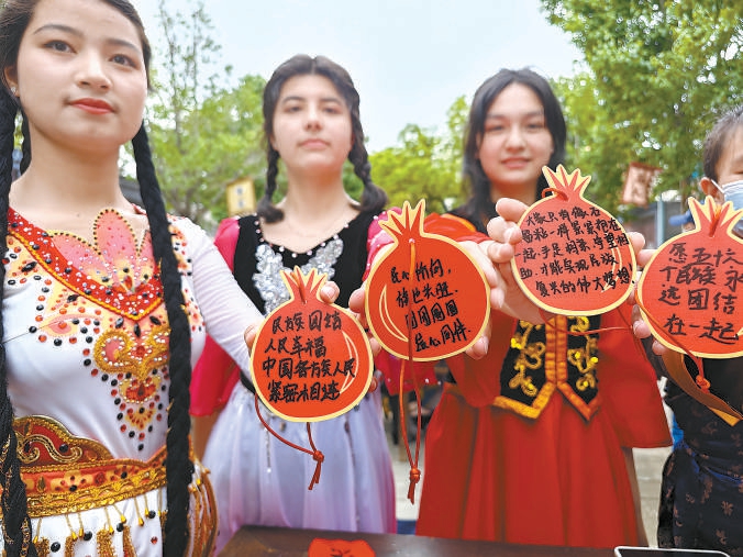 昨天,石景山区“石榴花开石景山”民族团结宣传月活动在京西五里坨民俗陈列馆启动,活动以“中华民族一家亲,同心共筑中国梦”为主题,推出“石榴籽·舞台计划”“石榴籽·家园计划”等一系列创建活动。本报记者 吴镝摄