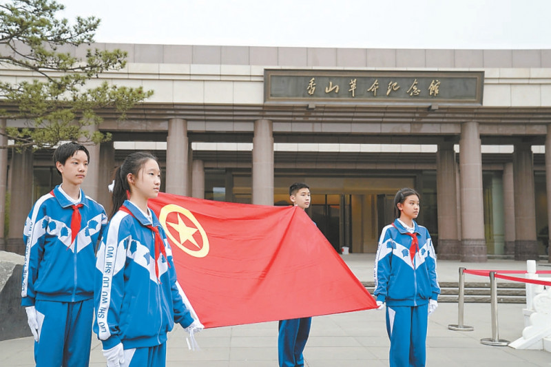 “我志愿加入中国共产主义青年团,坚决拥护中国共产党的领导,遵守团的章程……”昨天上午,香山革命纪念馆南广场响起嘹亮的宣誓声——第六十五中学为初二年级举办离队建团仪式,12名学生在这一天拥有了新身份,他们佩戴团徽,手持团员证,喊出青春誓言。