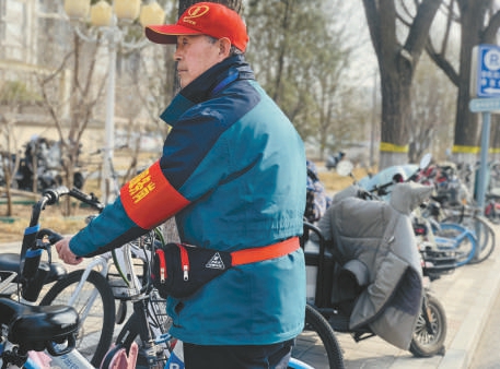 早高峰期间,地铁八通线土桥站外车水马龙,两位男士正在码放共享单车,把路口让出来。看这份认真劲儿和工作的熟练程度,不知道的或许会以为这二位是共享单车公司雇的人,实际上,他们来自临河里街道社区社会组织联合会下属的土桥社区“学雷锋志愿服务队”。