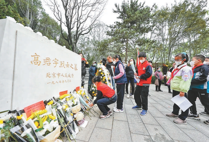 昨天,社会各界人士来到陶然亭高君宇烈士墓前敬献鲜花,诵读诗篇,缅怀先烈。 本报记者 方非摄