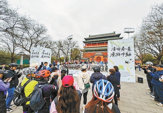昨天上午,“清明春景 漫游中轴”2023年东城区清明节文化活动在钟鼓楼广场启动。30位骑行爱好者沿着该区文旅局推荐的创意漫游线路,从钟鼓楼文化广场出发,打卡东城11个特色文化点位,体验9项趣味活动。