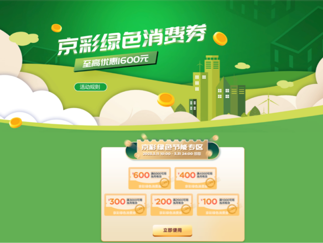 新闻报道北京3月底前派发京彩绿色消费券,最高抵1600元