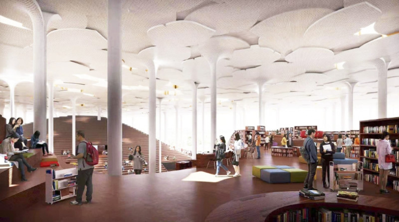 新闻报道城市副中心图书馆撑开“森林伞盖”