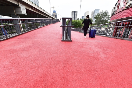 连日来,在运河明珠过街天桥上,工人正在紧张忙碌着,该天桥因周边地铁站及公交出行人数多,出现了地胶破损等问题,此次修缮将原有地胶铲除,打磨基层、铺设底层地胶,再铺设面层地胶,并对天桥台阶护角进行加固。“在这次维修保养的过程中,我们特意在每级天桥台阶的一侧都切出了一个小小的三角形凹槽豁口。这个独特的设计,可导流桥面积水,让积水顺着台阶缓缓流下桥,有效避免雨季积水造成的台阶、桥体锈蚀,增加天桥的使用寿命。”区城市管理委市政一所负责人说。