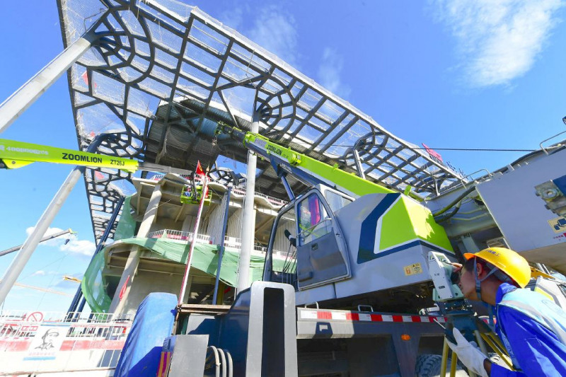 新闻报道“森林书苑”幕墙工程首根钢立柱开吊