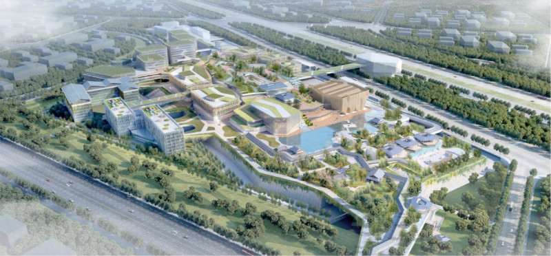 地下是现代繁华的偌大商业空间,M101与M104两条地铁线下穿而过,地上则是与城市绿心森林公园无缝衔接的景观绿地。在城市副中心三大建筑之间,地下共享配套设施正如火如荼施工建设,预计将于年内实现结构封顶。未来,市民乘坐地铁不用出地面,通过地下共享空间就能直接进入剧院、图书馆和博物馆。
