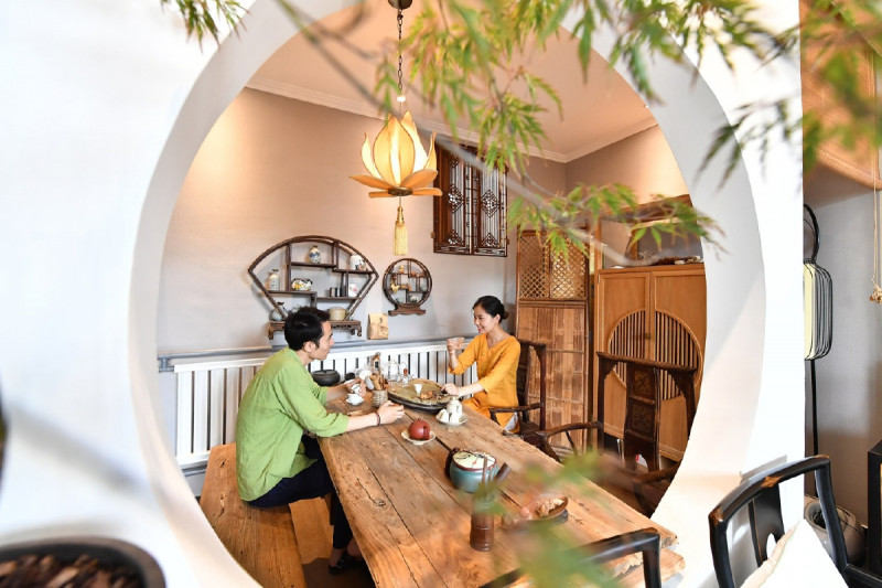 位于西集镇沙古堆村的民宿“闲庭叙”,院落仿制江南庭院,参照苏州园林特点,将古典元素与现代相融合。徽派马头墙、青瓦回纹头甘蔗脊、苏式雕花门楼与精心养护的花草相映成章,移步易景,曲径通幽。民宿还推出了特色服务,顾客可根据需要选择星厨到家、古筝古琴演奏等,满足个性化需求。“来西集游玩的客人,主要看重的是这里的生态环境比较好,不仅可以欣赏优美的大运河风光,还能体验田园生活的乐趣。”民宿负责人刘宝阳说,小院是他爷爷奶奶留下的宅基地,这两年看到周边几户民宿比较火热,于是他也产生了兴趣,再加上政府对民宿产业的支持,他当机立断就加入了民宿大军。