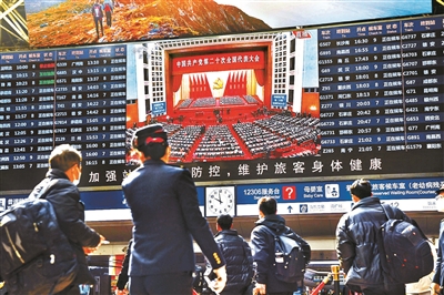 昨天上午10点,中国共产党第二十次全国代表大会在北京人民大会堂隆重开幕。为了让过往旅客能够第一时间看到开幕会实况,北京西站和北京南站等车站都开启了站内大屏幕直播开幕会盛况。