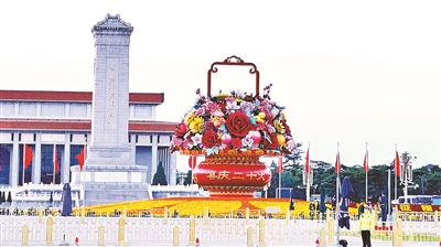 北京青年报记者昨日从北京市园林绿化局了解到,为了庆祝党的二十大胜利召开,天安门广场大花篮和长安街沿线部分花坛景观转换工作于昨日凌晨完成。其中,天安门广场中心的“祝福祖国”巨型花果篮文字中,“喜迎二十大”转换为“喜庆二十大”。此外,天安门广场及长安街沿线花坛中部分花卉换为更抗寒的品种。