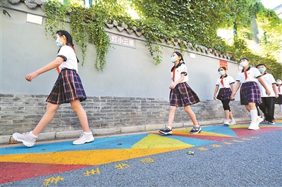 昨天上午,“灯市口北巷学生彩虹步道”正式启用。这条长262米的“彩虹步道”,南起灯市口大街,北至灯市口小学门口,并向西延伸与大鹁鸽胡同相接,是灯市口小学和景山学校同学们上下学的专用通道。