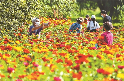 昨日,2022年圆明园金秋游活动开幕。今年,圆明园首次在官方公众号推出赏秋地图打卡小程序,游客到推荐景点拍照打卡,集齐卡片即可赢得折扣礼券。据悉,目前,园区西部的洞天深处、藻园等景区内,百日草、波斯菊等花卉已进入最佳观赏期,是夏末秋初拍照打卡的好去处。摄影/本报记者袁艺详见05版