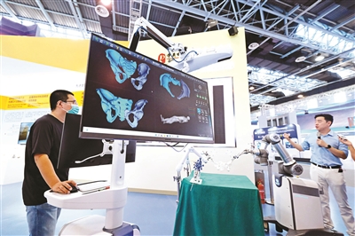 北京青年报记者获悉,2022中关村论坛将于9月22日至27日在京举办。据介绍,今年中关村论坛共设置论坛会议、技术交易、展览展示、成果发布、前沿大赛、配套活动六大板块,共130余场次活动。据了解,在论坛主会期外,还将举办贯穿全年的中关村论坛系列活动,实现“月月有活动,季季有亮点”,全年永不落幕。图为即将在中关村论坛上亮相的国际上唯一可以开展骨盆骨折复位的手术机器人系统。
