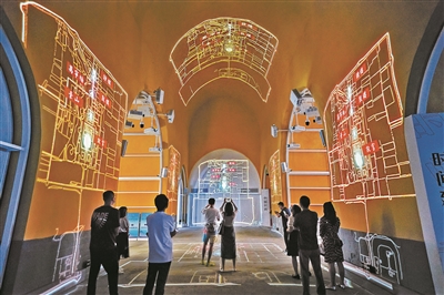 鼓楼展陈“时间的故事”昨日起投入试运营,展陈以新型的沉浸式数字展和丰富的交互体验与观众见面。纵横交错的中心券洞内,一场沉浸光影秀《共鸣》上演。观众可循着钟鼓之声,在720度全沉浸空间内漫步。目前,鼓楼内包括一层数字沉浸展和二层原状陈列展已全部面向公众开放。详见04版摄影/林萱