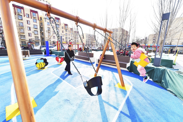 引入新物业服务后,玉桥南里小区广场提升改造成居民休闲娱乐好去处。(资料图) 记者 唐建/摄