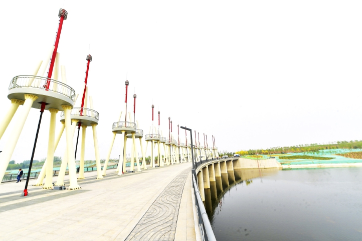 宋庄蓄滞洪区二期建设工程内,两侧健身步道等亲水设施已建设完毕。 记者 唐建/摄