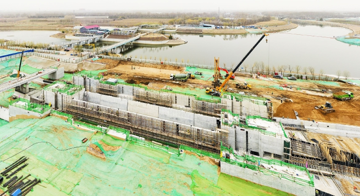 位于甘棠闸下游的榆林庄船闸,已进入闸门调试阶段。记者 常鸣/摄
