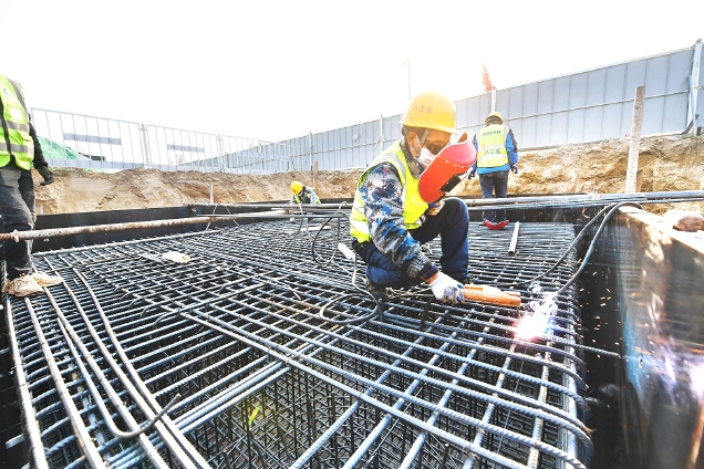 京雄高速北京段建设现场,工人正在进行承台施工。记者 常鸣/摄