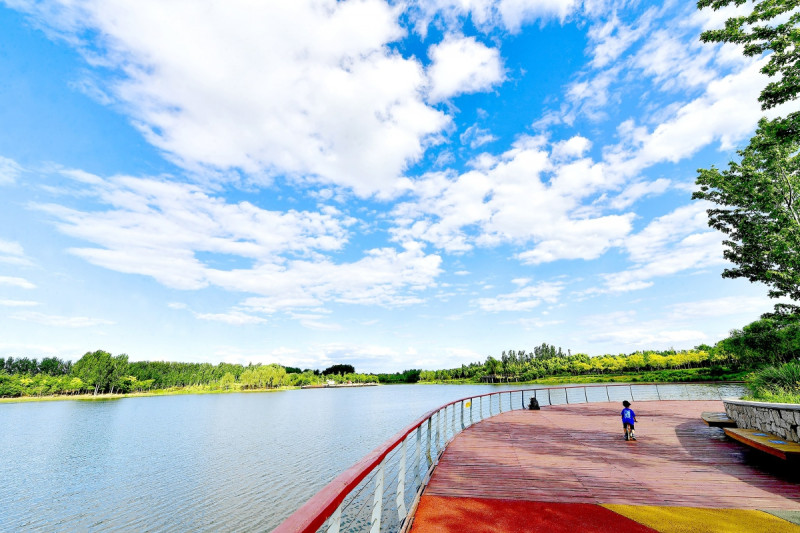 前五月城市副中心优良天数增加,蓝天白云成常态,图为东郊湿地公园。记者 唐建/摄