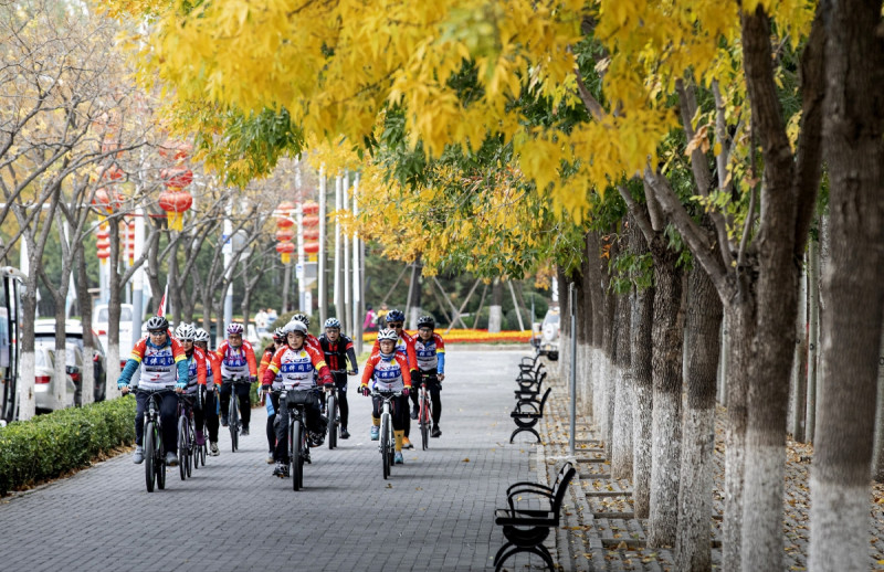 市民们在通济路结队骑行,感受秋风秋韵秋色之美。记者 唐建/摄