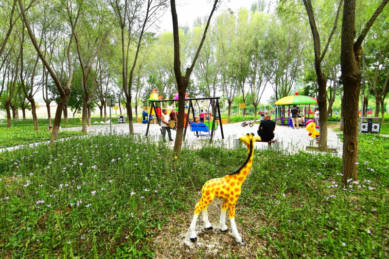 在于辛庄新建的林下儿童乐园内,孩子们开心玩耍。(资料图)记者 唐建/摄