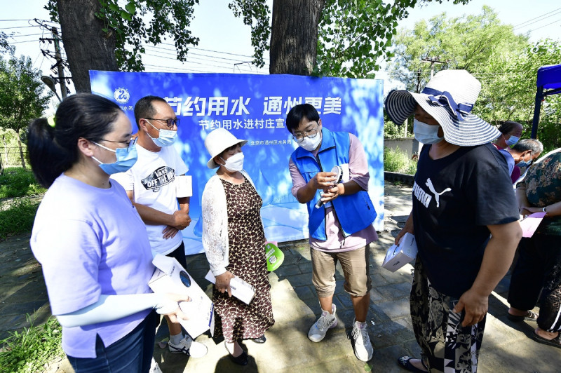 节约用水宣传进村庄活动中,工作人员向村民展示高效节水花洒。(资料图)记者 唐建/摄