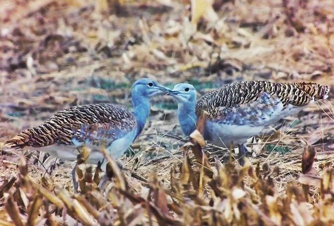 玉米地里,两只年初离开的大鸨归来越冬。记者 白继开/摄