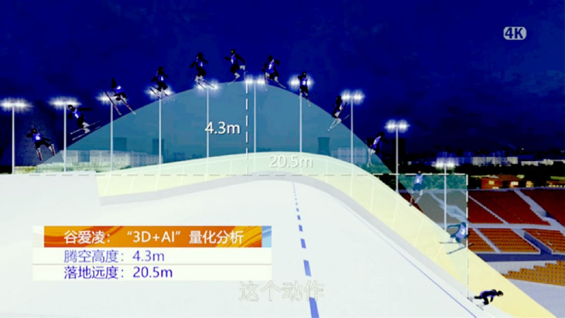 3D+AI技术为观众揭秘谷爱凌惊天一跃的“含金量”。(资料图)