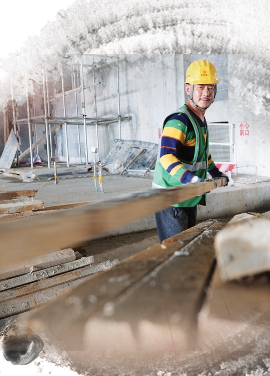 工人正在编织水池底板的钢筋网,为下一步施工做准备。 记者 常鸣/摄