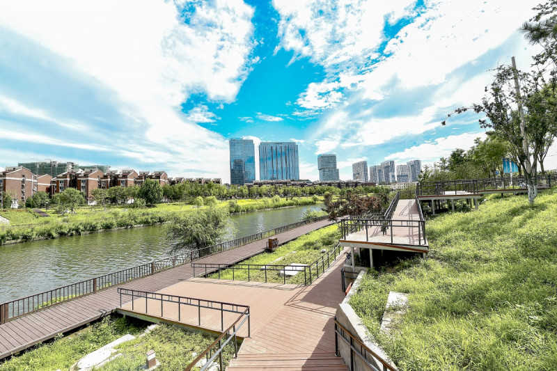 通惠河岸边绿道景色清幽,是市民散步的好去处。(资料图)记者 唐建/摄