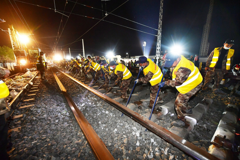 日前,由中铁六局承建的京唐铁路跨京哈铁路特大桥96号钢桥墩成功安装完成,施工工期由28天缩短至16个小时,打通了京唐铁路架梁施工的一个关键节点,为全线如期开通奠定了坚实的基础。