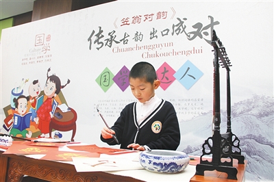 新京报讯 (记者黄颖)今起,北京市各小学生将正式进入寒假时间,假期中,他们还能跟着电视读古诗。当日,北京市教委等部门联合推出的“国学”诵读项目正式启动。北京市教委介绍,该节目名为“国学诵读”,能让孩子们从电视上听取经典篇目示范,再跟随画面诵读,诗句提示和唱卡拉OK时的歌词提示相似。