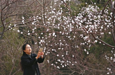 随着气温逐渐回升,不少春花悄然开放。今天,玉渊潭樱花节开幕,60余株杭早、阳光、山樱等品种早樱率先亮相。公园樱花物候观测小组人员预计,如果气温回升正常,园内上千株早樱将在下周末陆续迎来最佳观赏期。
