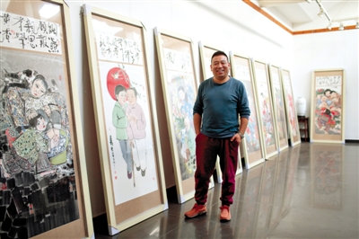 和宋庄镇小堡村村里大多数农民一样,靳东升从未想过,有一天会吃艺术这碗饭。2005年,他和妻子开了宋庄第一家农民画廊,一直经营到现在。