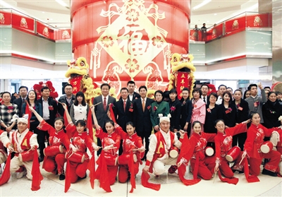 作为东方广场每逢年初的重头戏,一场以“洋洋得意贺新春”为主题的开年仪式在热闹迎新的同时,更寄托了对新一年的美好祝愿。北京东方广场有限公司总经理蒋领峰先生在开年仪式上向大家致以新年问候,并同香港旅游发展局、美国运通、日立数据、Bally、Moschino、Calvin Klein、Armani Collezioni、Alexandre Zouari、RIMOWA等企业代表一起为雄狮点睛、系红绳、授红包,并和安永、毕马威、德勤等金融翘楚代表为雄狮点额头,共同祈福新一年。随后伴着锣鼓队奏出的隆隆鼓声,舞狮表演把整场活动推向高潮,为人们带来惊喜的同时,更将新一年的喜气散播到人们身边。