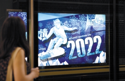 昨日,北京,申冬奥会宣传海报亮相北京地铁站。目前北京正全力以赴申办2022冬奥会,本月9日、10日,北京2022申冬奥代表团已在瑞士洛桑与国际奥委会委员举行了陈述交流会。2022年冬奥会的举办城市将在今年7月31日正式确定。 图/CFP
