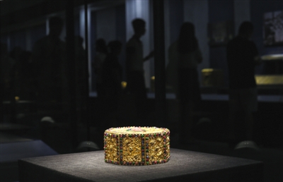 故宫博物院精品文物馆内,观众在参观清代宫廷金银器。昨日,故宫博物院精品文物馆在奥森公园瞭望塔开馆。首批展出以“金碧辉煌”为名的202件金银器,也是首次集中在公众面前亮相。未来5年内,故宫还将把院藏的家具、玉器、青铜器、瓷器等“外迁”至此,开办系列展览传播故宫文化。新京报记者 浦峰 摄