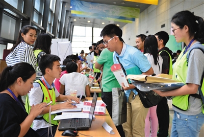 新京报讯 (记者许路阳)此前备受争议的北大燕京学堂,迎来首届新生。昨日,北京大学2015级迎新工作因为雨势尚未停歇,从室外转至室内,而前来正式报到的8000余名本、硕、博新生中,包含数十名燕京学堂中国学硕士研究生项目首届新生,和4名囊括今年国际化学奥赛全球前4名的本科新生。