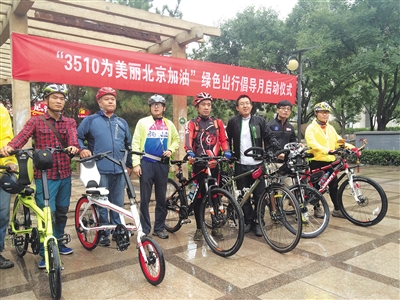 新京报讯 (记者李婷婷)“3公里以内出行请步行、5公里以内请骑行、10公里以内请乘坐公共交通工具!”昨日上午,“3510为美丽北京加油”绿色出行倡导月正式启动。首都文明办、市委社会工委、团市委联合社会组织面向北京市民,共同发布《3510绿色出行·蓝天畅通永相伴》倡议书。