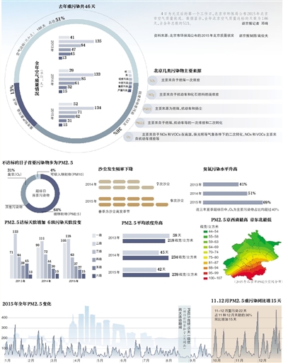 4日为元旦后的第一个工作日,北京市环保局公布2015年北京市空气质量状况。数据显示,去年北京空气质量达标的天数为186天,占全年总数的51%。