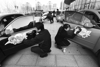 昨天上午,北京汽车博物馆广场,众多车主将园博会公益宣传车贴贴在了爱车车门上。园博会组委会相关负责人说,“我与园博同行——汽车总动员”主题公益活动将于近日在全市展开。动员司机朋友在日常生活中,响应园博会号召,传播保护环境,低碳节能,植树造林,珍惜资源,关爱绿地,珍视蓝天六大理念。新京报记者 马力 通讯员 杨战 摄影报道