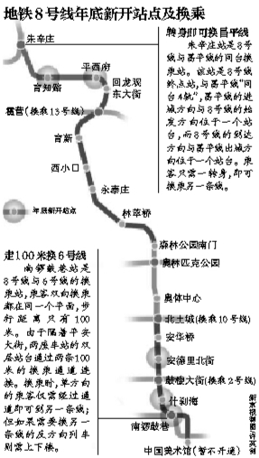 新京报讯 (记者汤旸)全长6.3公里的昌平线和8号线联络线工程将于年底通车,届时,8号线将向北接入昌平线朱辛庄站,向南接入6号线南锣鼓巷站,去年“甩站”的安德里北街站也将同期开通,共新增5站地。预计9月,昌八线空载试运行,年底载客试运营。