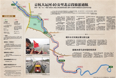 6月26日,京杭大运河北京段甘棠闸至市界28.7公里河道实现旅游通航。此前,通州城市段11.4公里已实现旅游通航。随着两段航道正式连通,京杭大运河北京段40公里河道正式迎来旅游通航。