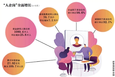 稳企业促就业,截至5月底,北京市企业职工劳动合同签订率达98.6%,城镇职工劳动合同续订率达92.1%,城镇调查失业率持续低于5%的年度预期目标。对于退役军人、农民工、残疾人和就业困难人员等重点群体的就业,北京加大就业困难人员帮扶。
